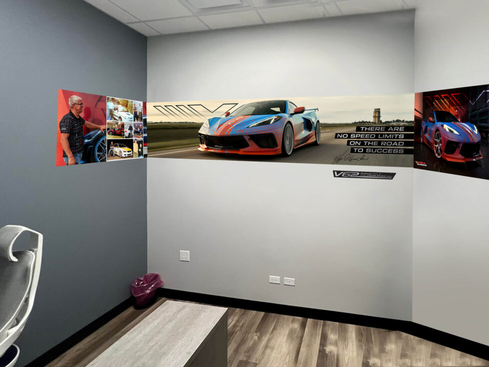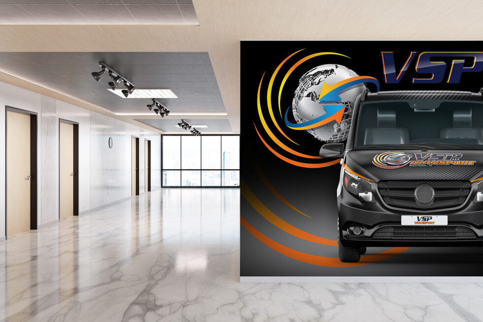 Custom graphics for internal spaces, warehouses, showroom walls, and exterior signage.